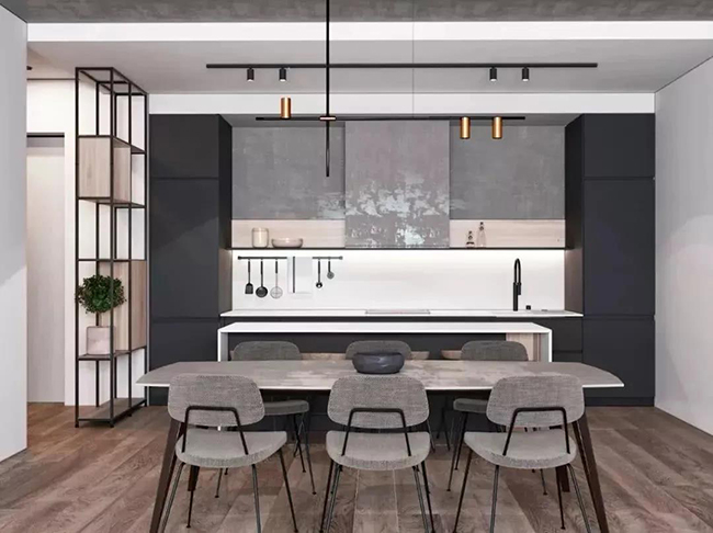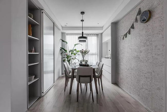 純凈的木質(zhì)材料,搭配簡約而時尚的灰色,純粹自然中,感受一種簡約到極致的美好感受。在板材的裝飾下,室內(nèi)總可以營造出更多的溫馨與舒適感。
